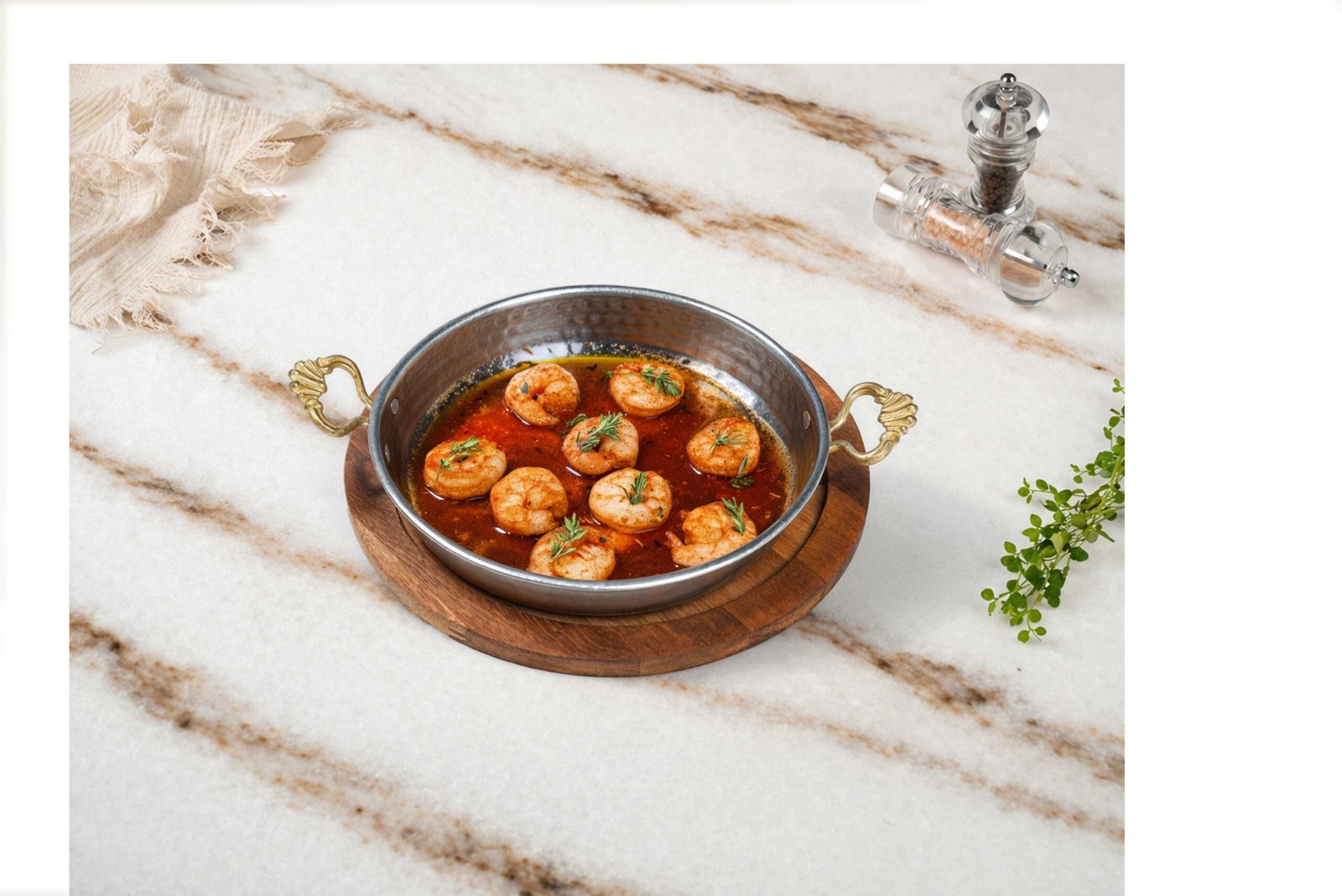 Karides, tereyağı, sarımsak, kekik ile