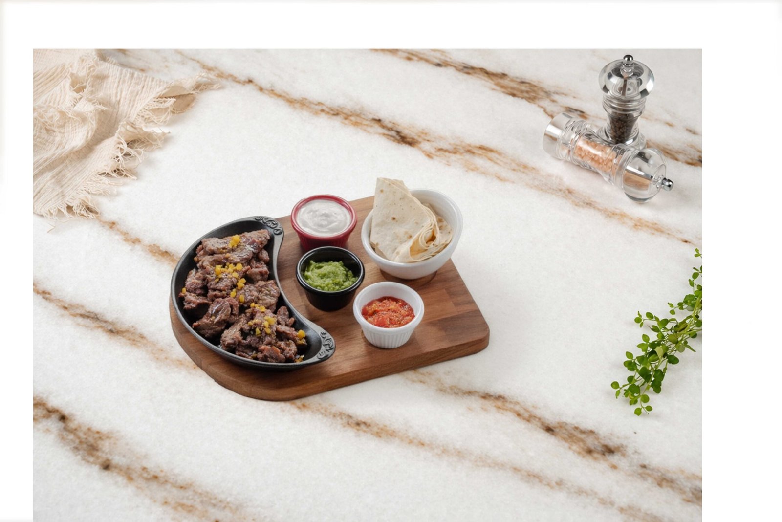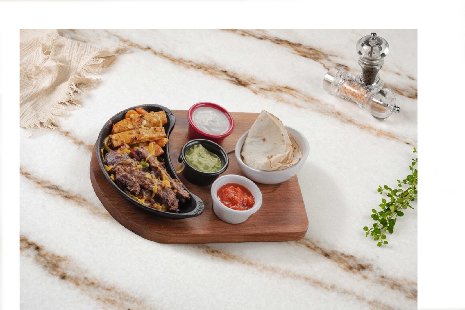 Et Fajita1195 ₺Antrikot, sotelenmiş mix sebze, fajita baharatı, jalapeno biber, şarap sos, avokado sos, salsa sos, süzme yoğurt ile