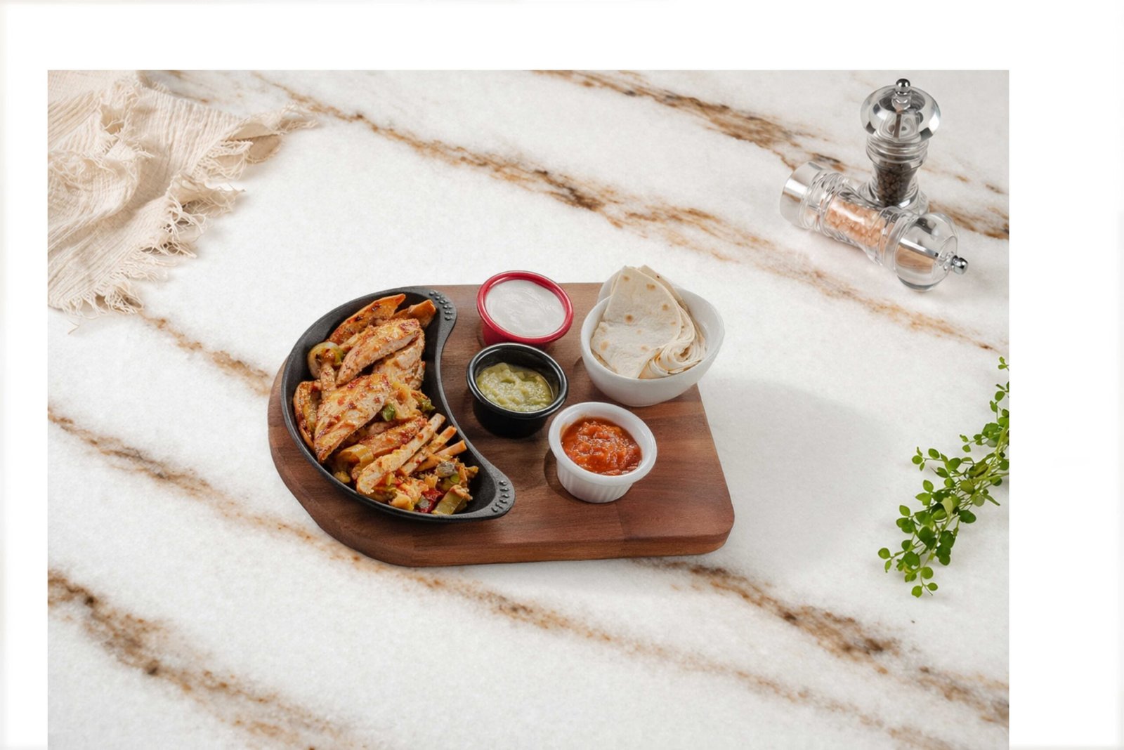 Tavuk Fajita995 ₺Tavuk fileto, sotelenmiş mix sebze, fajita baharatı, jalapeno biber, şarap sos, avokado sos, salsa sos, süzme yoğurt ile