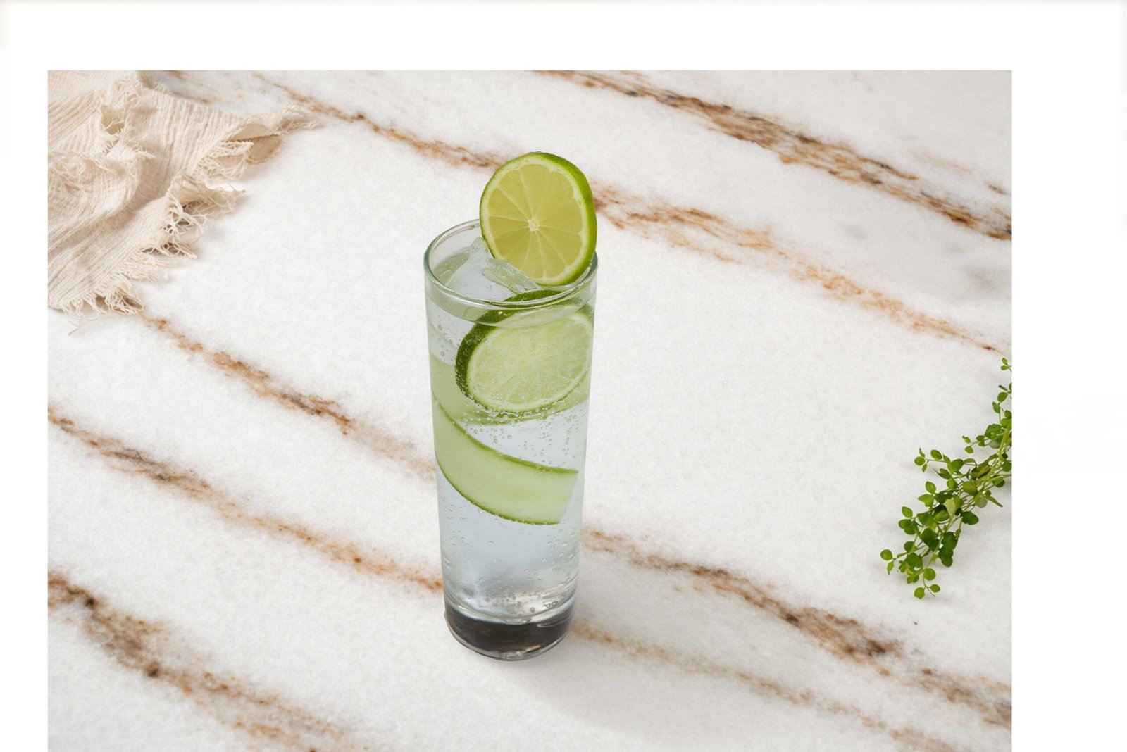 Limon suyu, taze nane, rosemary ve salatalık ile aromalandırılır, lime dilimleriyle servis edilir.