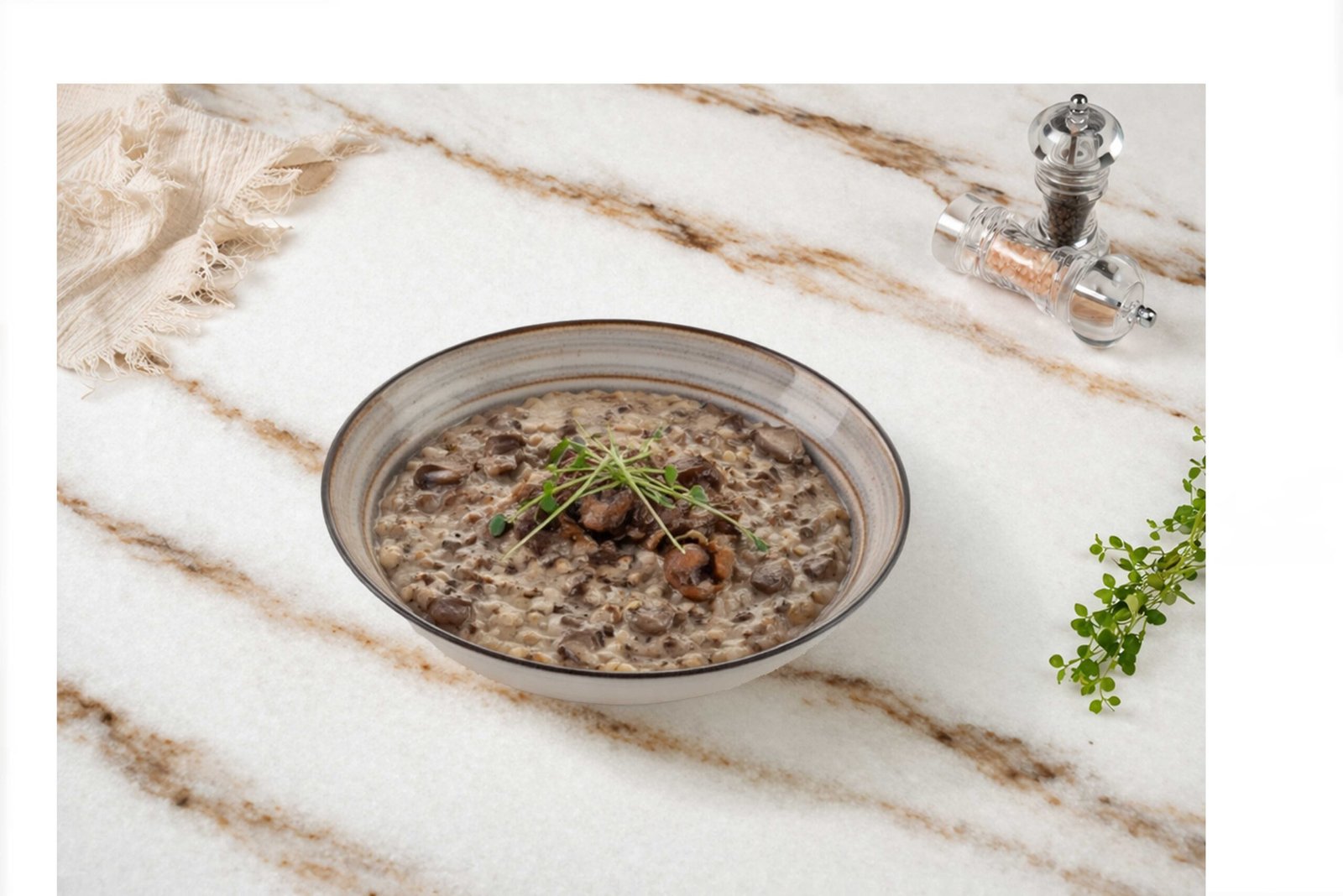 Porcini mantarı, kestane mantarı, kültür mantarı, istiridye mantarı, tereyağı, parmesan peyniri, krema ile