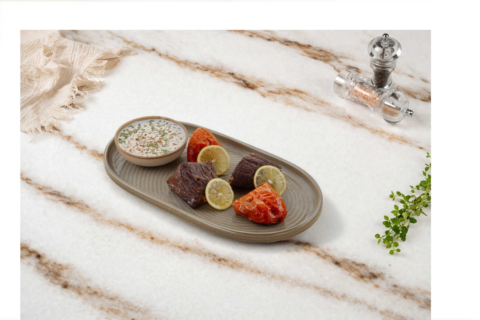 Ali Nazik695 ₺Antrikot, soğan, biber, domates, közlenmiş patlıcanlı yoğurt, kırmızı yağ, maydanoz, közlenmiş biber ile